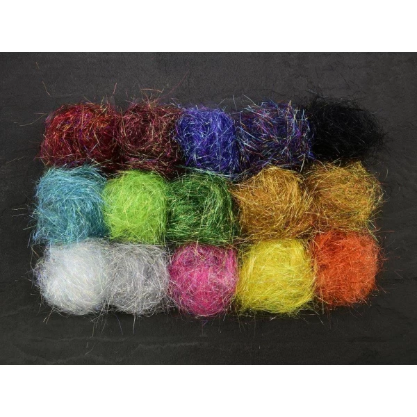 SSS Glitz is a long fiber flash dubbing with extreme characteristics. Unlike the usual SSS dubbing that is built on translucent synthetic fibers, Glitz is built up of flash fibers in several qualities and colors. A dubbing mix may contain up to 15 different types of fibers. All helping to achieve those perfect glittering seductive characteristics without tangles of fibers. Of course, Glitz is a dubbing with fibers that are long enough to be brushed to perfection, even on the largest of flies. It is well suited for larger salmon and sea trout flies. It creates saltwater flies and sculpins beyond your wildest dreams. It sparkles and shines more than any other dubbing! Glitz – when you want your big flies to stand out! SSS Glitz comes in 15 color blends.