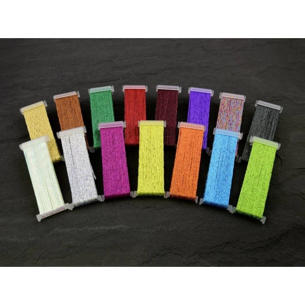 15 holographic colours which whit its unique, strong colour and reflection gives fantastic bodies and super strong glittery ribbings in all necessary colours. It twists just as easy and holds it sparkling colour just as good as the regular SSS Braid. The holographic silver and gold braid is today tied in on tens of thousands of flies worldwide! The SSS Holo Braid comes in 15 colours.